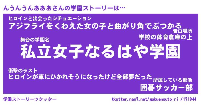 | 告白場所 先生の家の上 …「ふぃぎゅこ」 | 2月17日 06:24 |