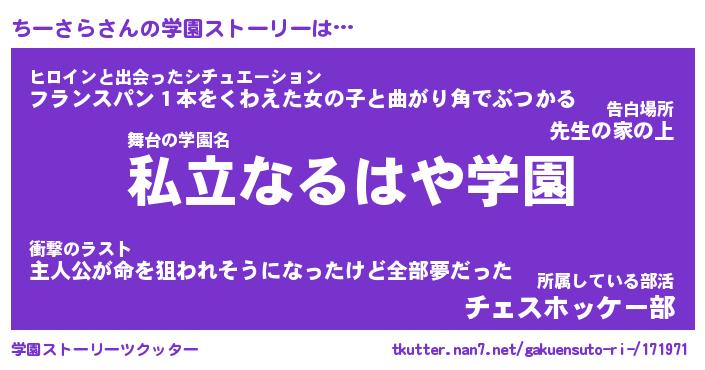 | 胡散臭い通販商品みたいなあだ名 | 『モテモテ間違いなし水晶球…その名も「ちーさら」』 |