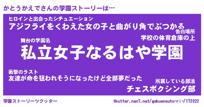 | ヒーロー風カッコイイあだ名 | 『スーパーカトウカエデ』『幻影騎士カト』 |
