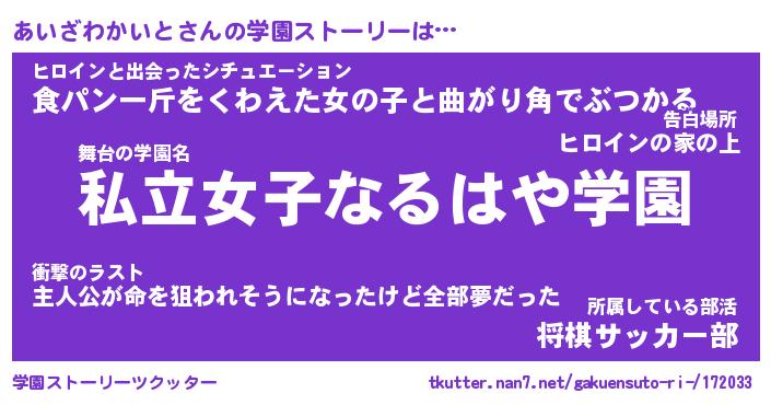 | 肩書あだ名 | 『あいざわかいと社長令嬢』 |
