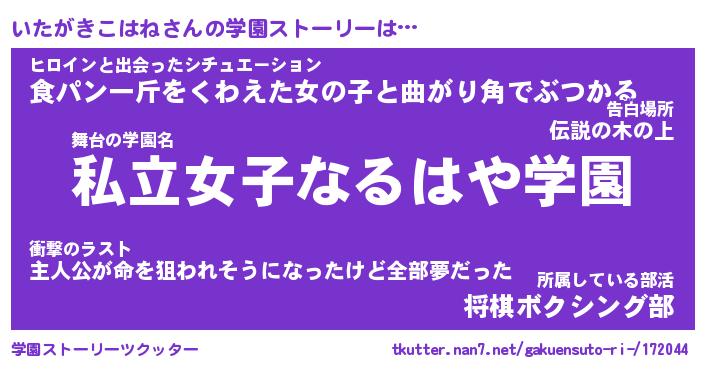 | 伝説のあだ名 | 『不死鳥のスナイパーいたがきこはね』 |