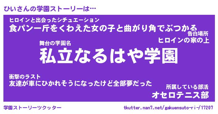 | 男性向けラノベタイトル風あだ名 | 『ひいの憂鬱』『ノーゲーム・ノーヒイ』 |