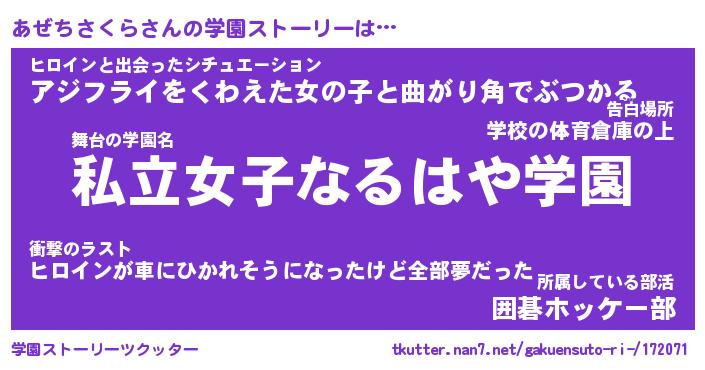| 伝説のあだ名 | 『封印されしスナイパーあぜちさくら』 |