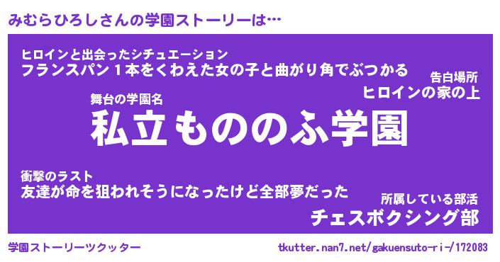 | 男性向けラノベタイトル風あだ名 | 『みむらひろしの憂鬱』 |