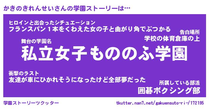 | 告白場所 先生の家の上 …「ふぃぎゅこ」 | 2月17日 06:24 |