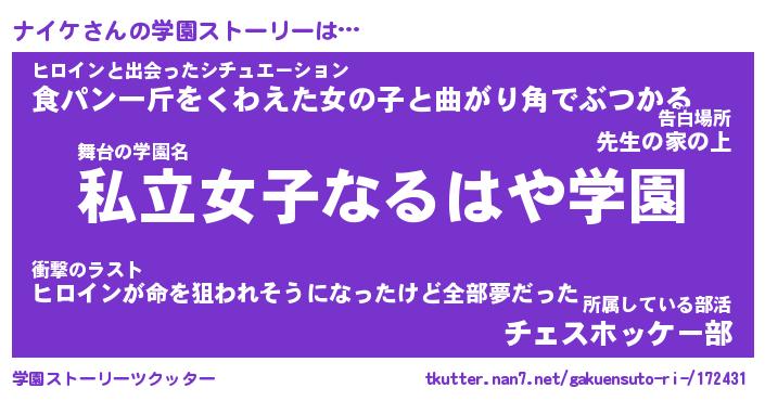 | ファンタジー風あだ名 | 『ナイフェル』『エターナルナイケー』 |