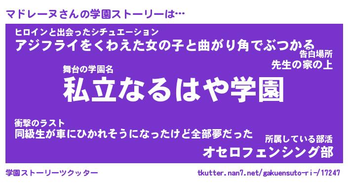 | ファンタジー風あだ名 | 『マドフェル』『エターナルマドレーヌー』 |