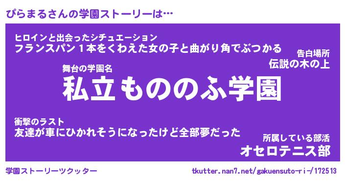 | 女子向けラノベタイトル風あだ名 | 『(仮)ぴらまるのやんごとなき事情』 |