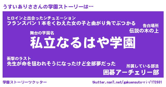 | 男性向けラノベタイトル風あだ名 | 『うすいありさの憂鬱』 |