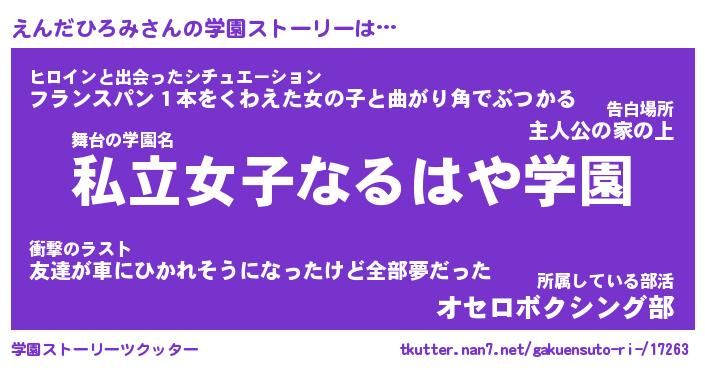 女子向けラノベタイトル風あだ名 | 『誰かこのえんだひろみを説明してください! ~契約から始まるウェディング~』 |