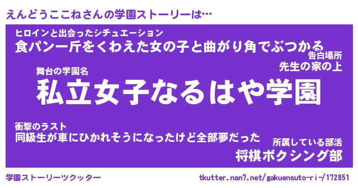 | 胡散臭い通販商品みたいなあだ名 | 『億万長者になれる水晶球…その名も「えんどうここね」』 |