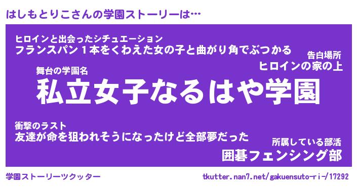 | 女子向けラノベタイトル風あだ名 | 『はしもとりこ姫と円卓の騎士』 |