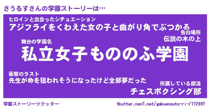 | 意味不明あだ名 | 『ペロリンさうるす』『永久保存さうるす』 |