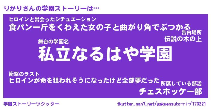 | 女子向けラノベタイトル風あだ名 | 『りかり姫と円卓の騎士』 |