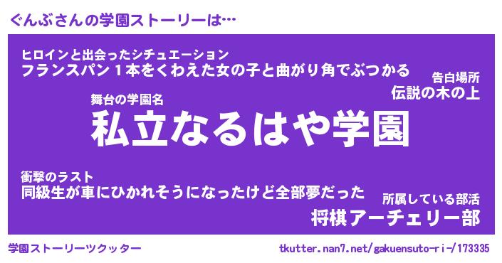 | 女子向けラノベタイトル風あだ名 | 『(仮)ぐんぶのやんごとなき事情』 |
