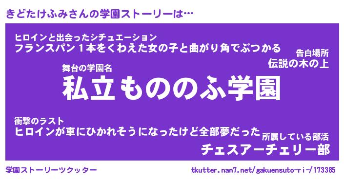 | 男性向けラノベタイトル風あだ名 | 『きどたけふみの憂鬱』 |