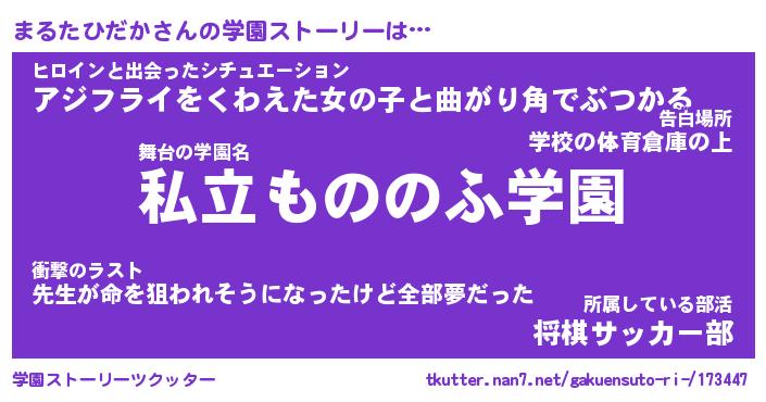 | 男性向けラノベタイトル風あだ名 | 『まるたひだかの憂鬱』 |