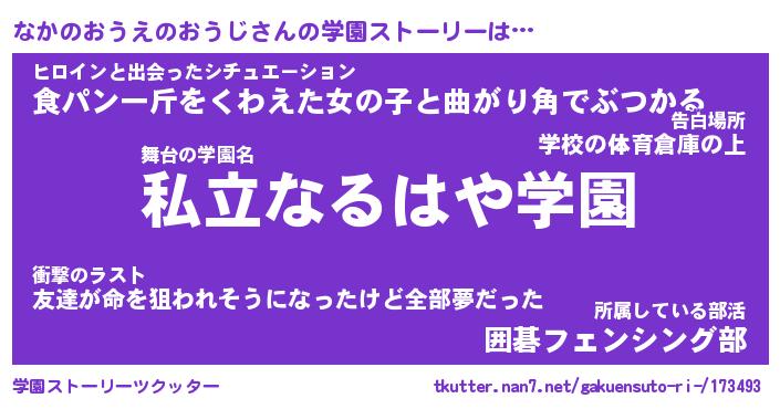 | 告白場所 先生の家の上 …「ふぃぎゅこ」 | 2月17日 06:24 |