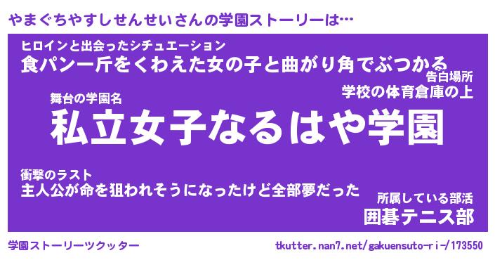 | 伝説のあだ名 | 『封印されしスナイパーやまぐちやすしせんせい』 |