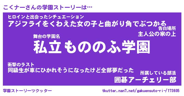 | 男性向けラノベタイトル風あだ名 | 『こくナーの憂鬱』 |