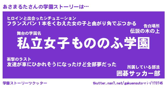 | 女子向けラノベタイトル風あだ名 | 『あさまるた姫と円卓の騎士』 |