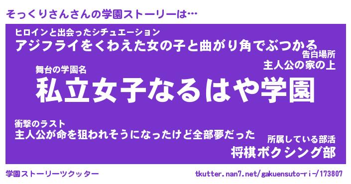 | 告白場所 先生の家の上 …「ふぃぎゅこ」 | 2月17日 06:24 |