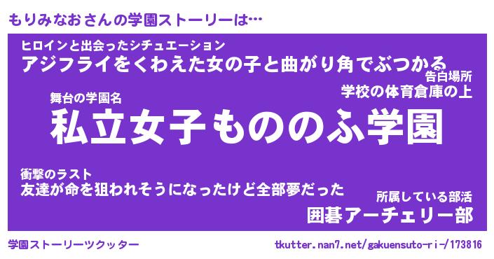 | ファンタジー風あだ名 | 『モリフェル』『エターナルモリミナオー』 |