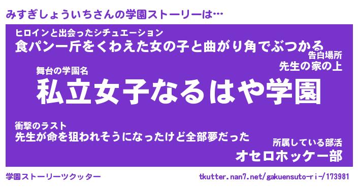 | 肩書あだ名 | 『みすぎしょういち御曹司』 |