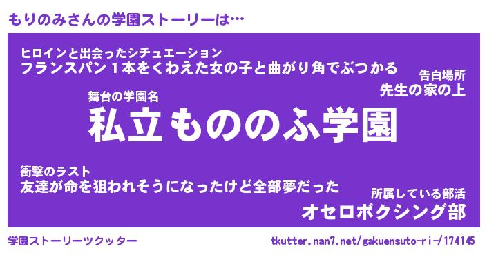 | 胡散臭い通販商品みたいなあだ名 | 『必ず成功するブレスレット…その名も「もりのみ」』 |