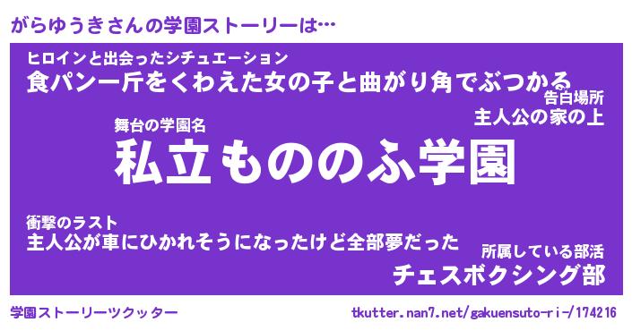 | 男性向けラノベタイトル風あだ名 | 『がらゆうきの憂鬱』 |