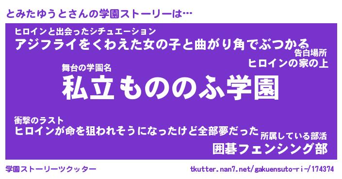 | 女子向けラノベタイトル風あだ名 | 『(仮)とみたゆうとのやんごとなき事情』 |