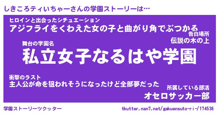 | 女子向けラノベタイトル風あだ名 | 『しきころティいちゃー姫と円卓の騎士』 |