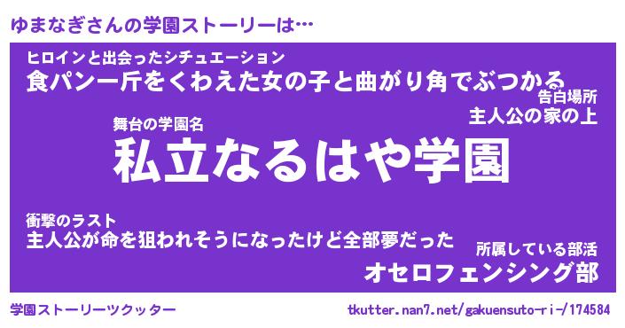 | 伝説のあだ名 | 『不死鳥のスナイパーゆまなぎ』 |