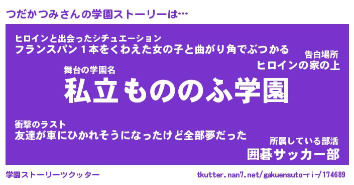 | 男性向けラノベタイトル風あだ名 | 『つだかつみの憂鬱』 |