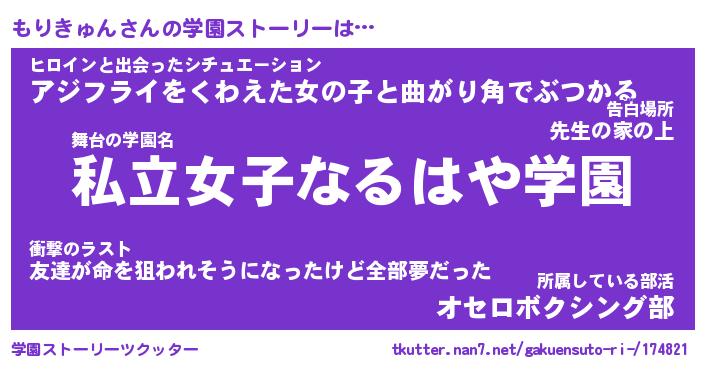 | 男性向けラノベタイトル風あだ名 | 『モリキュンアートオンライン』 |