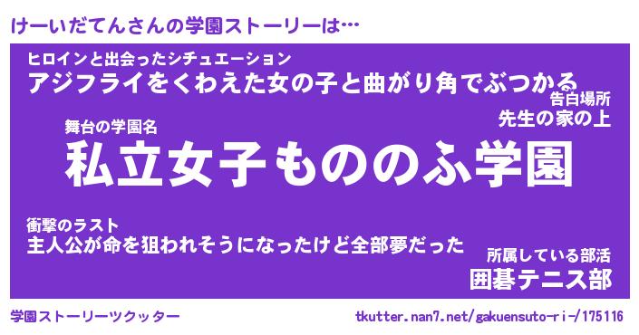 | 女子向けラノベタイトル風あだ名 | 『けーいだてん姫と円卓の騎士』 |