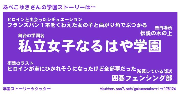 | ファンタジー風あだ名 | 『アベフェル』『エターナルアベコユキー』 |