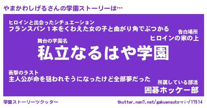 | 女子向けラノベタイトル風あだ名 | 『(仮)やまかわしげるのやんごとなき事情』 |