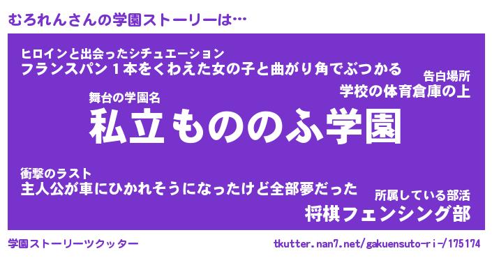 | 男性向けラノベタイトル風あだ名 | 『むろれんの憂鬱』 |