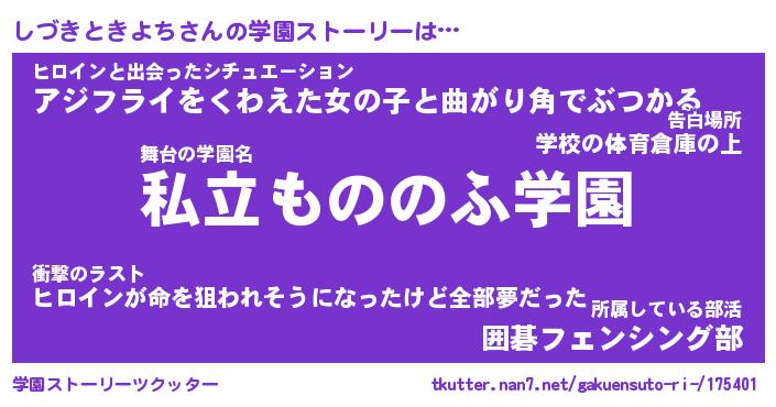 | 胡散臭い通販商品みたいなあだ名 | 『必ず成功する水晶球…その名も「しづきときよち」』 |