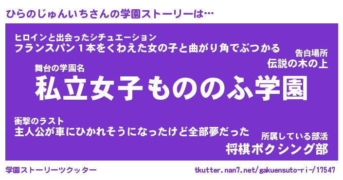 | 女子向けラノベタイトル風あだ名 | 『誰かこのひらのじゅんいちを説明してください! ~契約から始まるウェディング~』 |