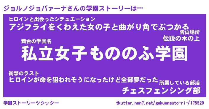 | 女子向けラノベタイトル風あだ名 | 『誰かこのジョルノジョバァーナを説明してください! ~契約から始まるウェディング~』 |