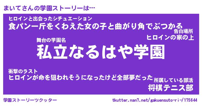 | 男性向けラノベタイトル風あだ名 | 『まいての憂鬱』 |
