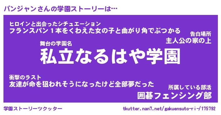 | ファンタジー風あだ名 | 『パンフェル』『エターナルパンジャンー』 |