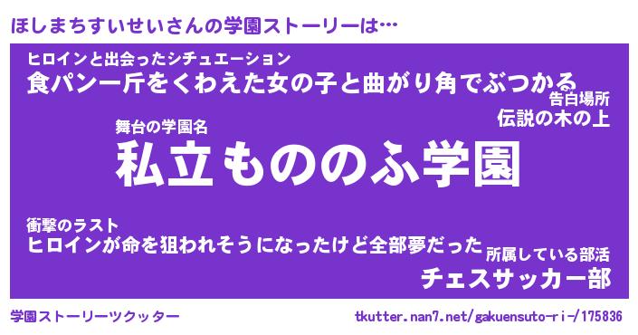 | 男性向けラノベタイトル風あだ名 | 『ほしまちすいせいの憂鬱』 |