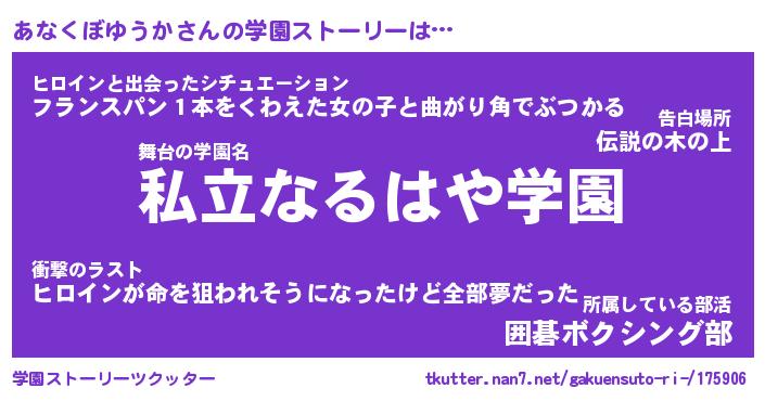 | ヒーロー風カッコイイあだ名 | 『スーパーアナクボユウカ』 |