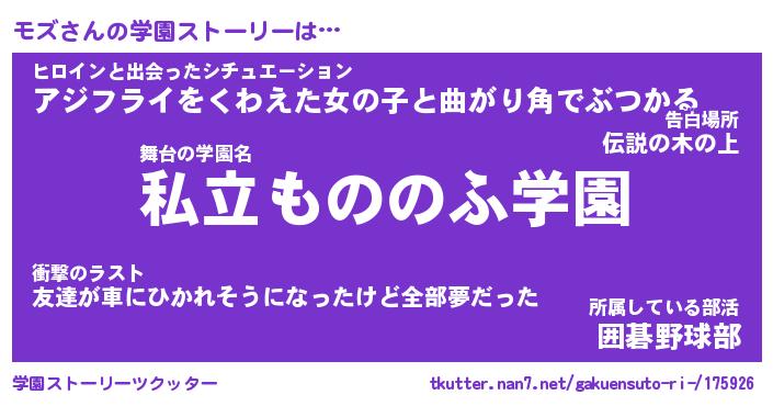 | ファンタジー風あだ名 | 『モズフェル』『エターナルモズー』 |
