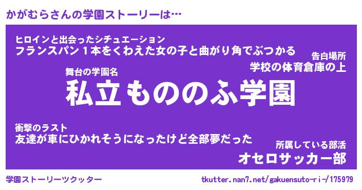 | 男性向けラノベタイトル風あだ名 | 『かがむらの憂鬱』 |