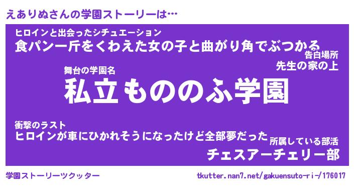 | 女子向けラノベタイトル風あだ名 | 『えありぬ姫と円卓の騎士』 |