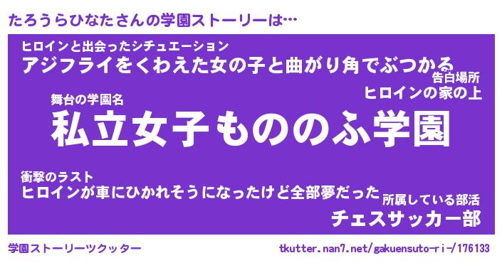 | 胡散臭い通販商品みたいなあだ名 | 『億万長者になれるブレスレット…その名も「たろうらひなた」』 |